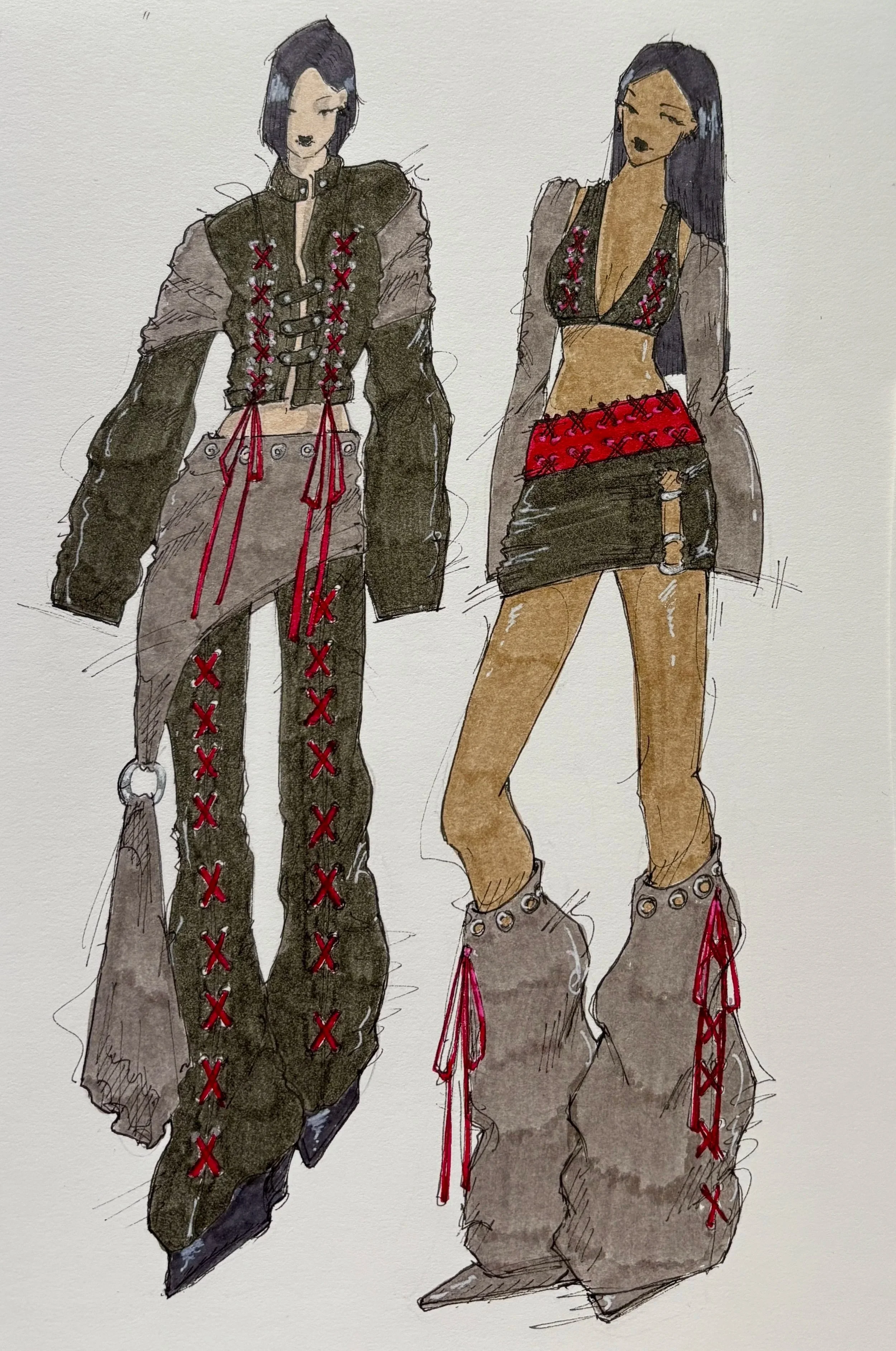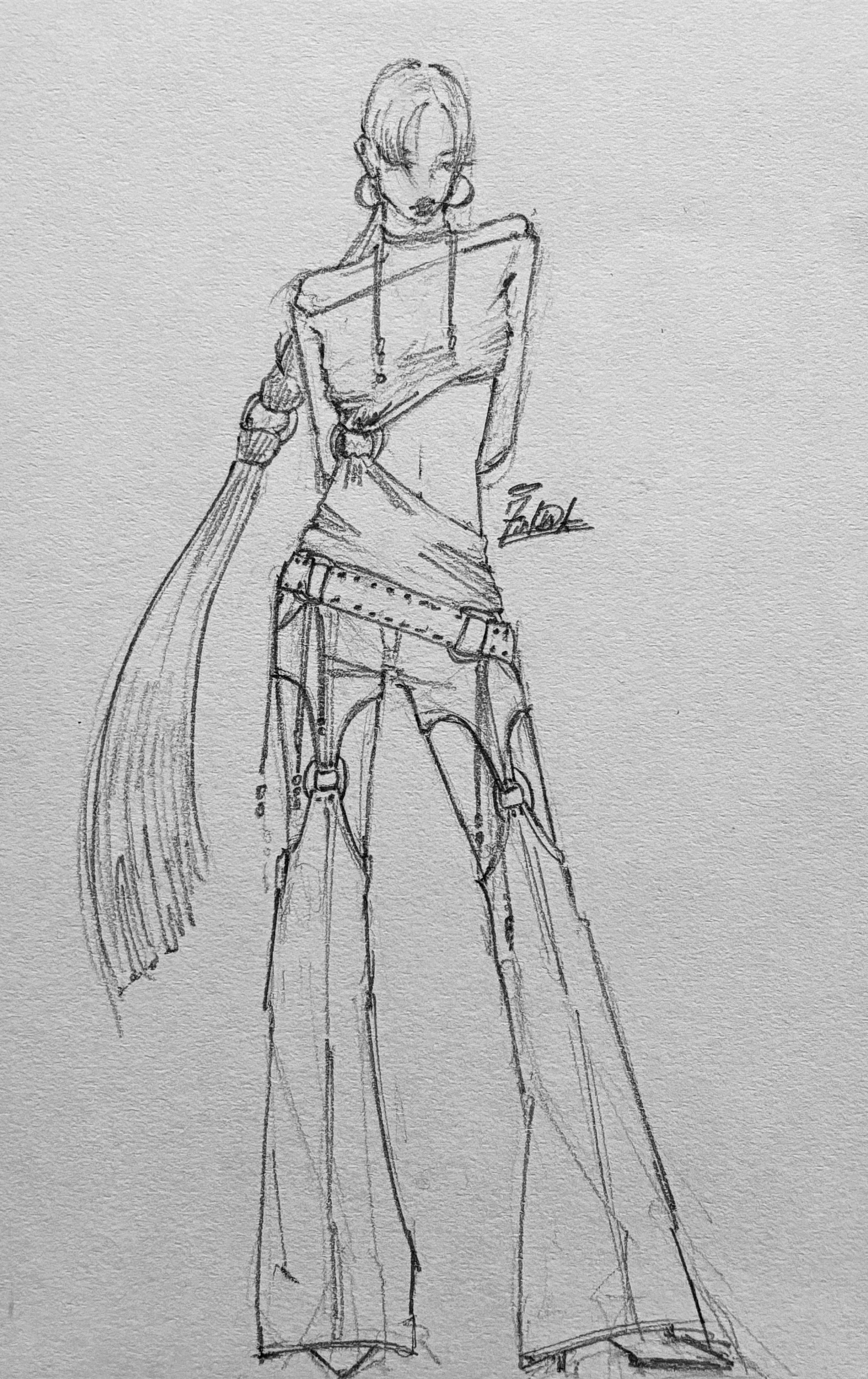 fashion illustration Original fashion garment design illustrated on paper with pencil, ballpiont pen and color markers.