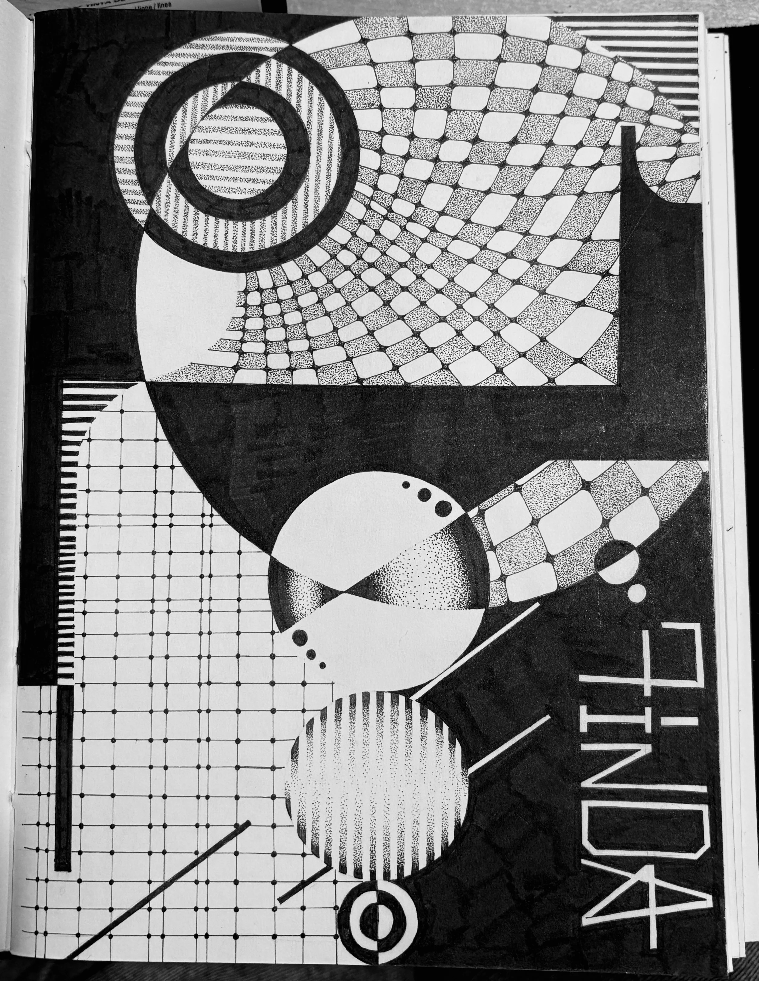 Hand drawn illustration done on paper with pencil and ballpoint pen.